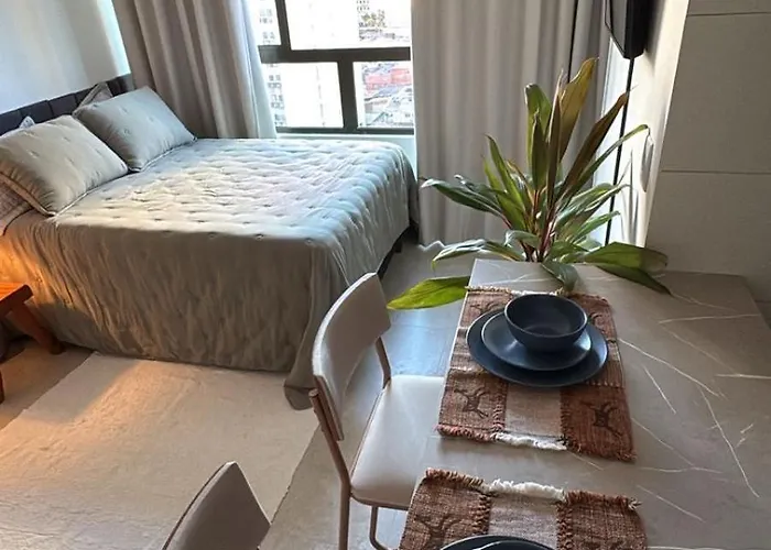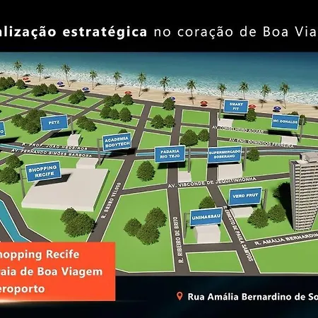 Flat Boa Viagem Apartment is fitted with an equipped kitchen. The nearest airport is Guararapes, 0.9 km from Flat Boa Viagem Apartment, and Atacadao Boa Viagem bus station is nearly 10 minutes' walk away. Guests can take a dip in a swimming pool to relax after a long day.